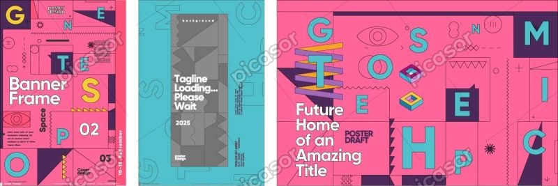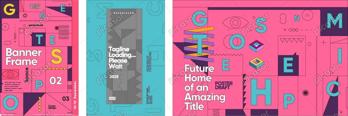 وکتور بنر حروف وکتور بنر اشکال هندسی دیجیتالی وکتور بنر خلاقانه از حروف و اشکال هندسی دیجیتالی وکتور پوستر حروف انگلیسی