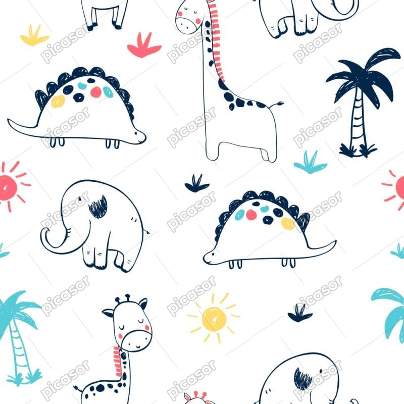 وکتور الگو دایناسور و ماموت کارتونی – وکتور پس زمینه دایناسور های کارتونی