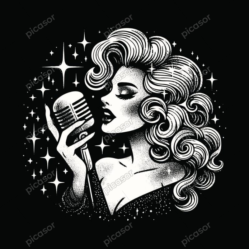 وکتور زن خواننده با میکروفون وینتیج – وکتور خواننده زن با میکروفن در دست