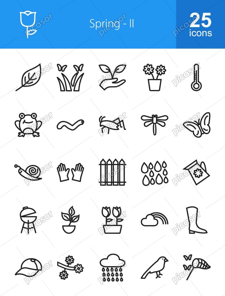 25 وکتور آیکون حیوانات و حشرات بهار و طبیعت طرح مینیمال خطی