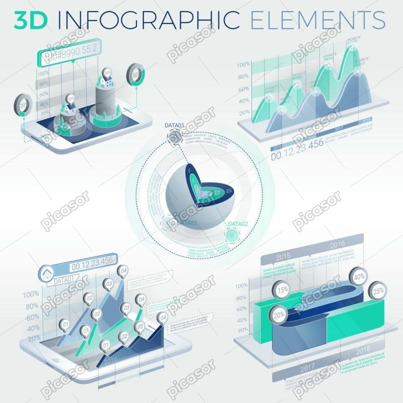 5 وکتور اینفوگرافیک نمودار با تبلت و موبایل طرح 3 بعدی