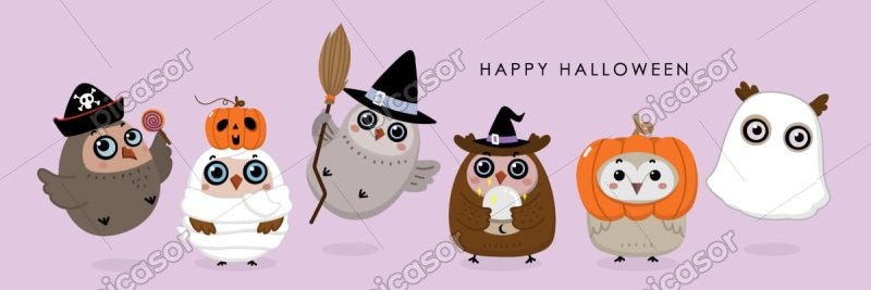 6 وکتور جغد بامزه کارتونی لباس هالووین