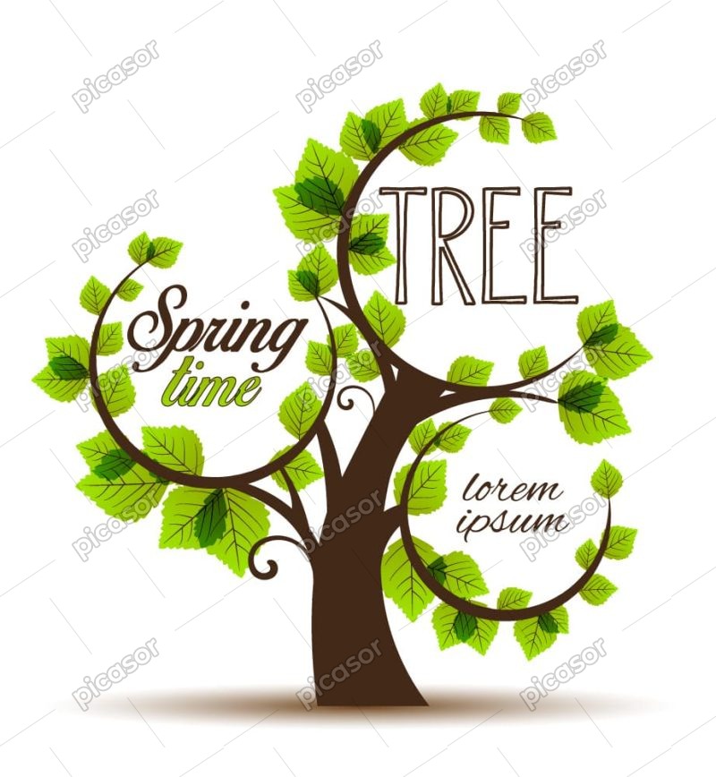 وکتور درخت در فصل بهار با برگ های سبز